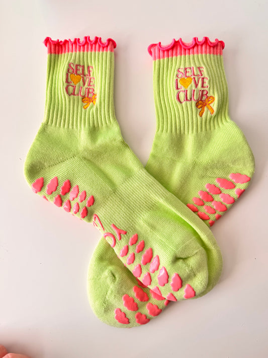 "SELF LOVE CLUB" PILATES CREW GRIP SOCKS