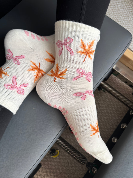 Cozy Season Grip Socks (Teddy, Bows & Maple Leaves)