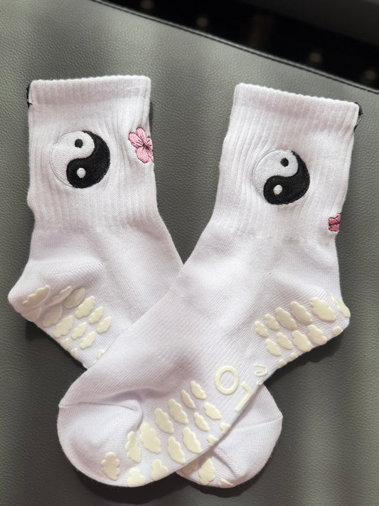 Yin Yang or Sakura Soles – Embroidered Grip Socks for Pilates, Barre & Yoga