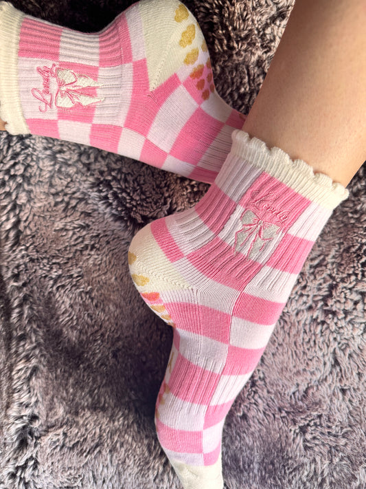 “LOVELY” crew Pilates grip socks