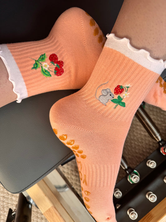 STRAWBERY DREAMS or LITTLE PIP ,EMBROIDERED PILATES GRIP SOCKS