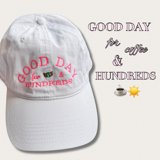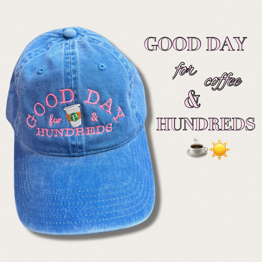 “GOOD DAY FOR COFFEE AND HUNDREDS “ ☀️☕️🌿 dad hat 🧢